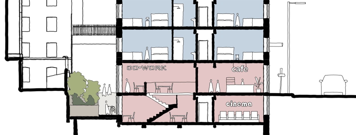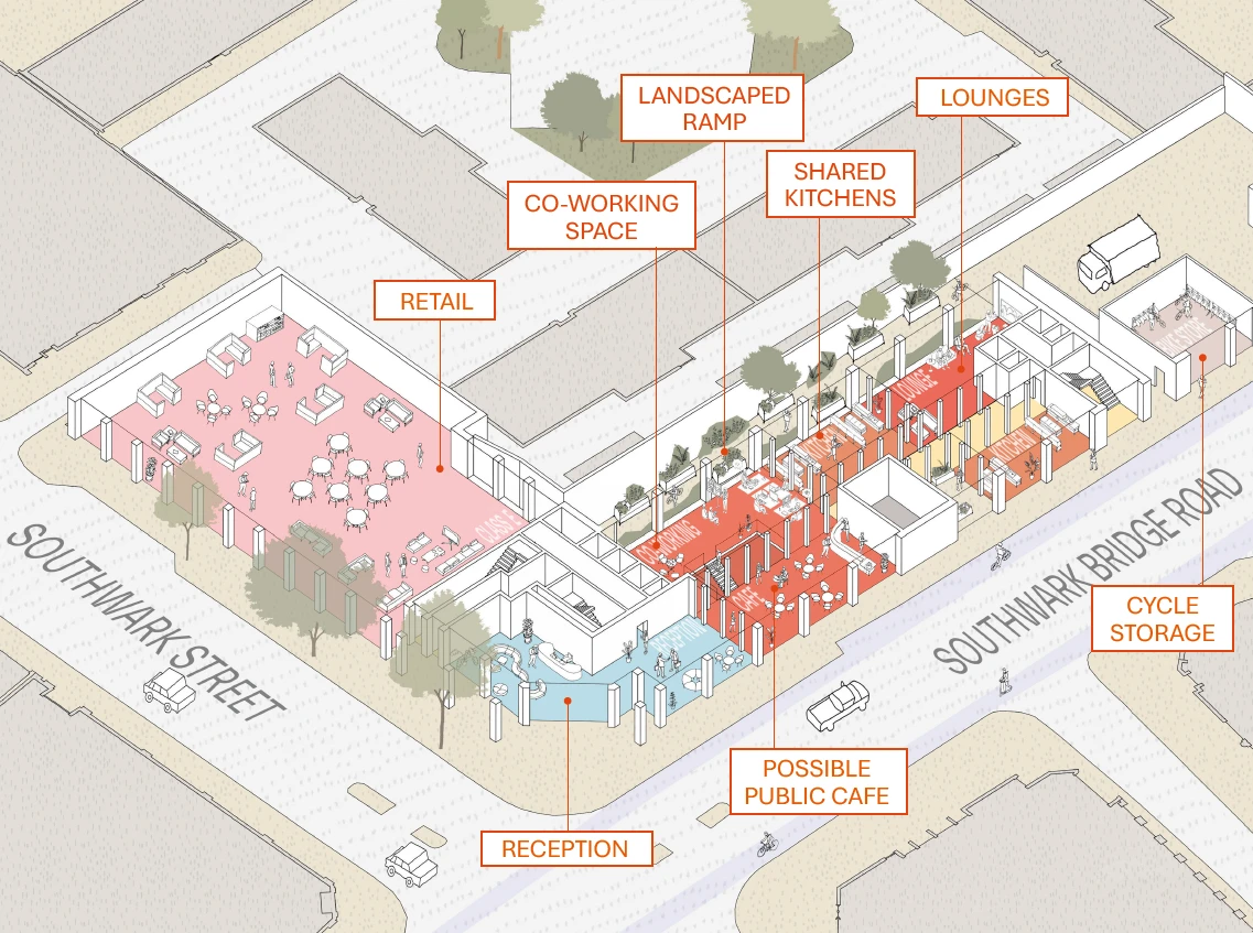 At ground floor we are creating a vibrant collection of new uses providing amenity for co-living residents, members of the public and the existing local community.