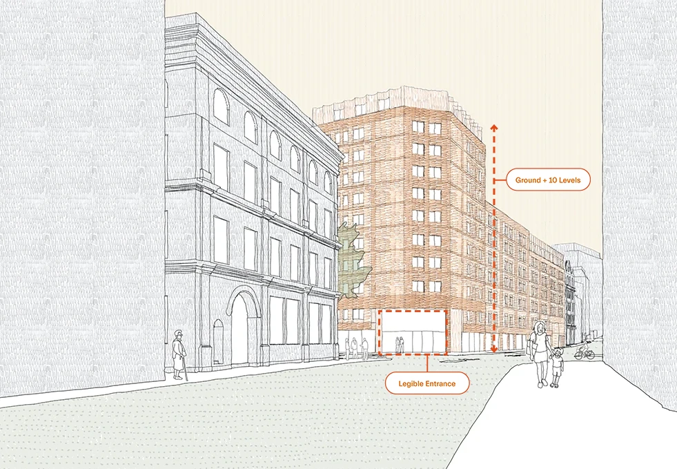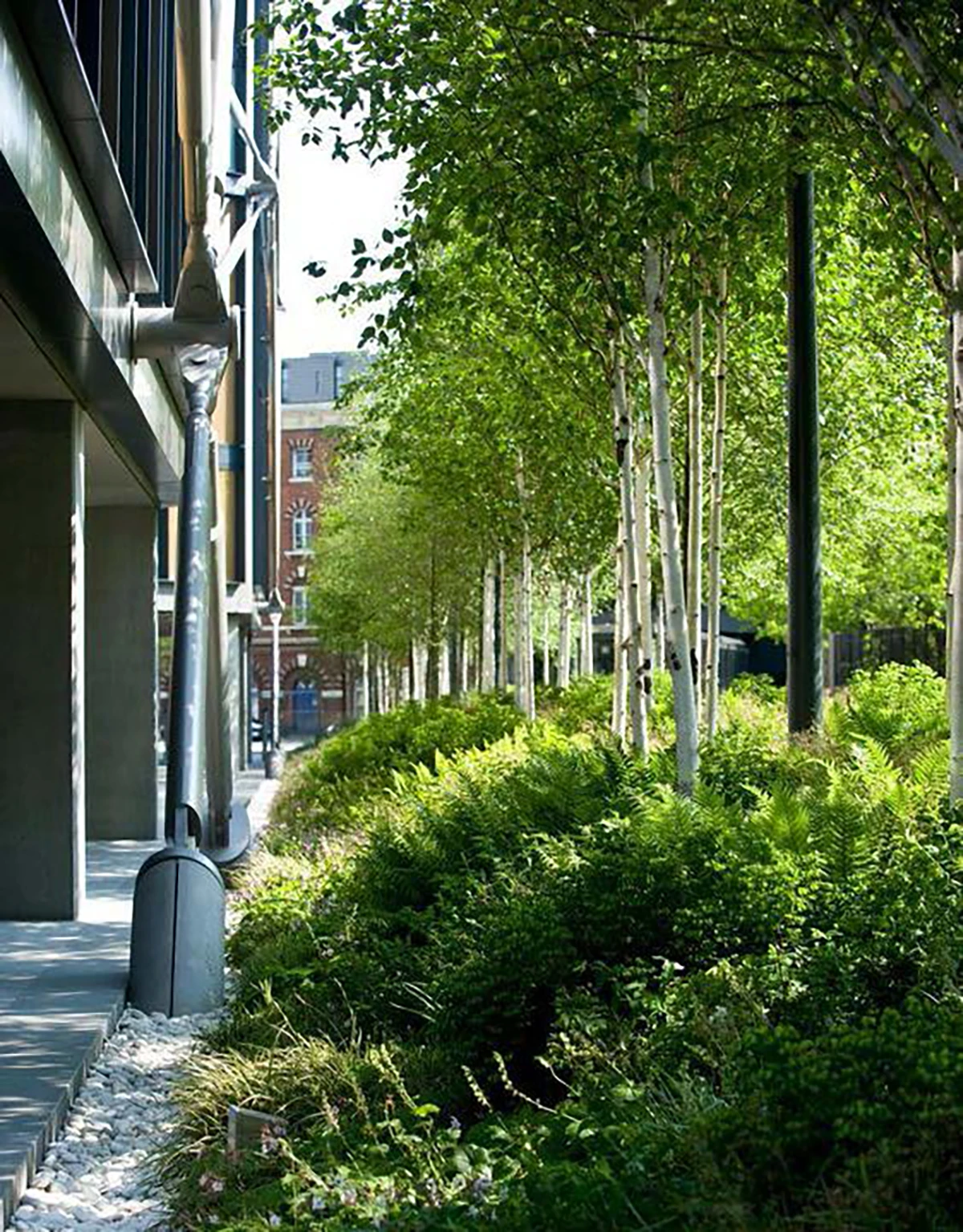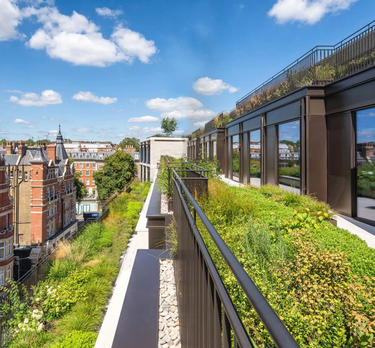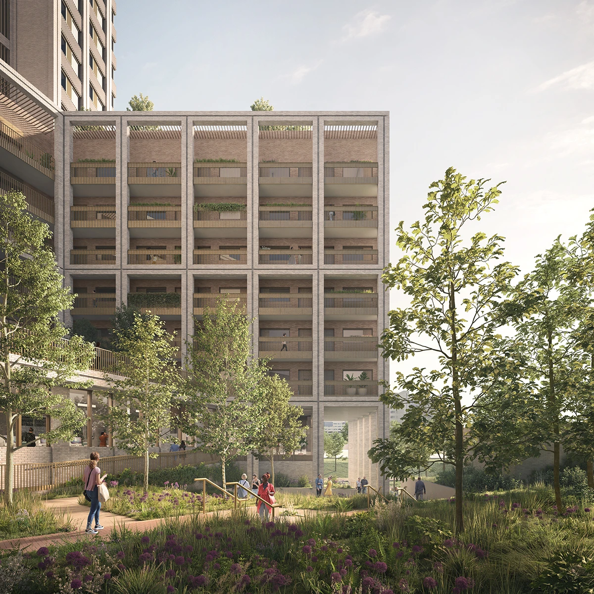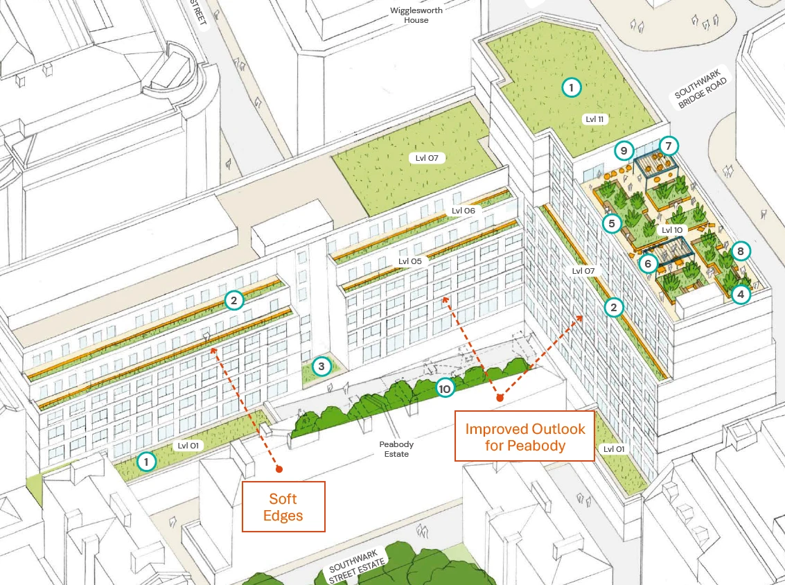 The landscape strategy aims to optimise external spaces, enhancing amenity, ecology, well-being, and sustainable drainage benefits throughout the development. The proposals include green external spaces for the co-living residents at the ground floor and upper most terrace.